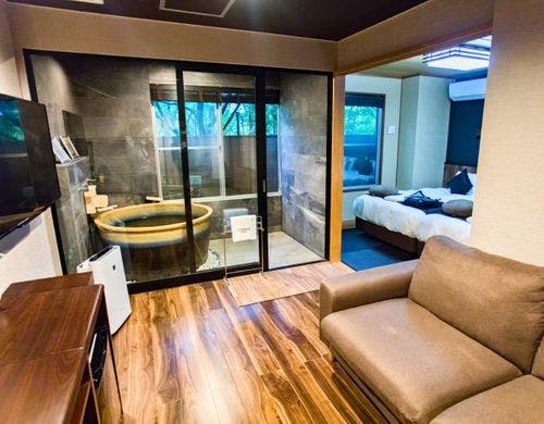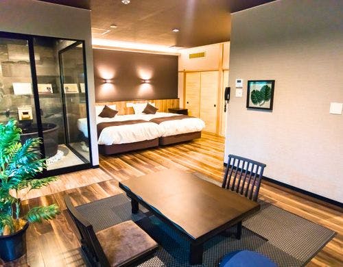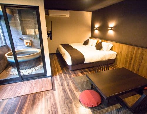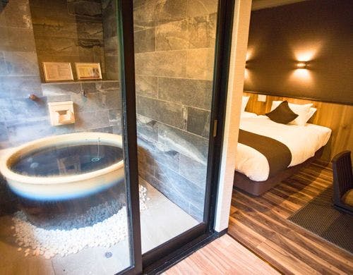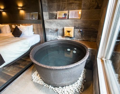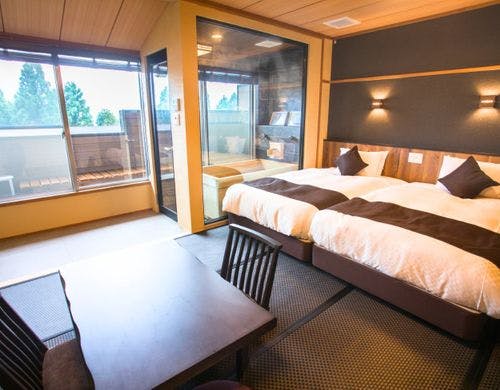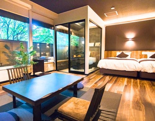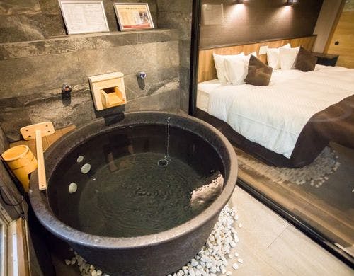 和モダンがテーマの全室露天風呂付温宿。熱々ステーキやいくら&すき焼き食べ放題の「冬の旬味覚ビュッフェ」を連日開催!