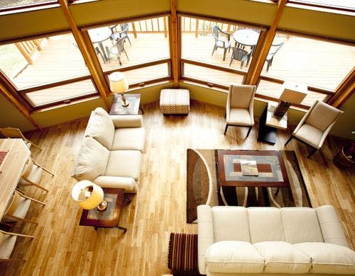 北米ヒノキの香りに包まれ森林浴しているようにリラックスできる貸別荘。調理器具、食器、アメニティ完備。