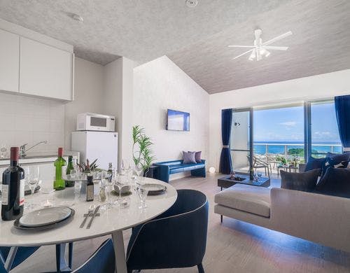 恩納村の小高い丘の上に開放感あふれるオーシャンビューバルコニー付全6室のコンドミニアム。