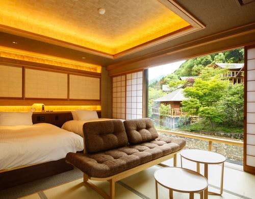 四季彩る稜線を見上げ、野山の風が和む渓流の奥座敷。現代の暮らしで捨てた旧き佳き日の文化・風土・生活様式に寄り添い、暮らすように泊まる。