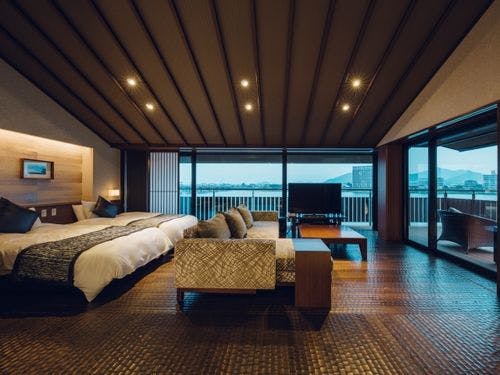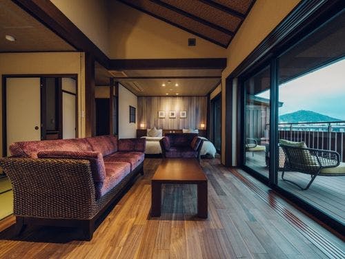 大正八年創業。文人墨客の宿として愛されてきた迎帆楼は、全室半露天風呂付・十室限定の宿として蘇ります。