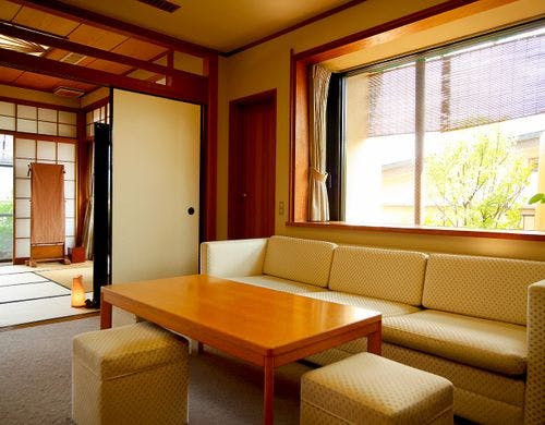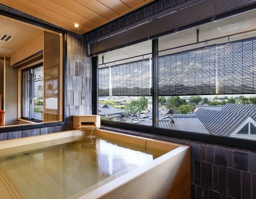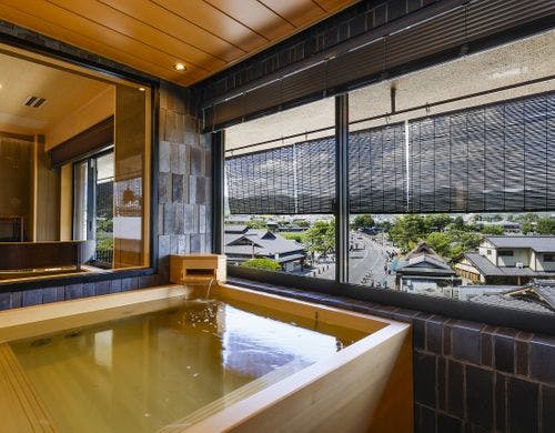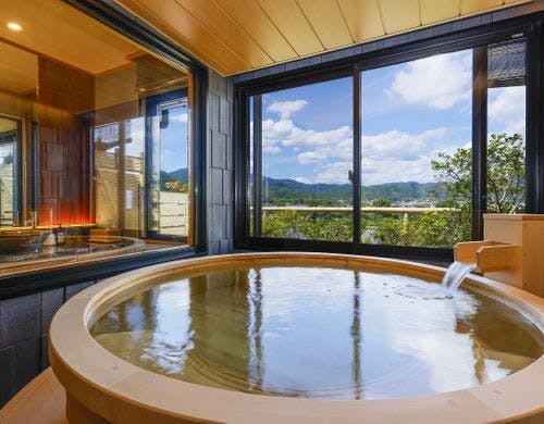 【料亭旅館】嵐山・嵯峨野散策に最適な嵐山温泉の宿。露天風呂付・天然温泉付・24年改装した檜風呂付など多種客室がございます