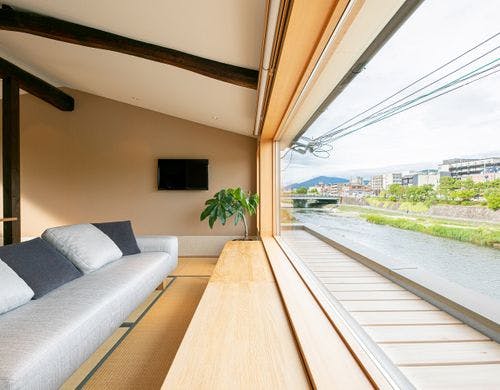 鴨川の眺望が楽しめる町家。一組様だけの貸切宿。琴の演奏体験もできます。