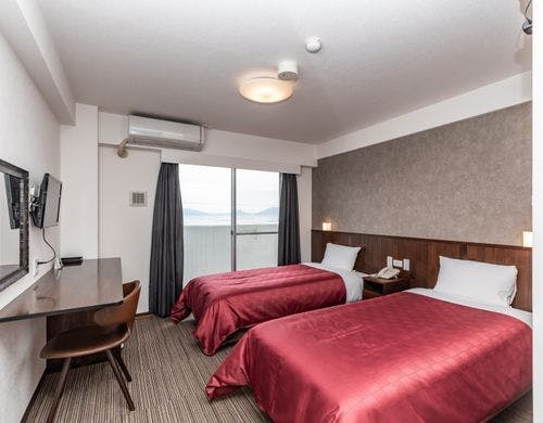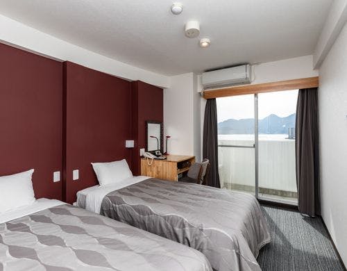 宮島の対岸に位置し、宮島の大鳥居を一望できます。全室オーシャンビューで屋上から花火大会が観覧できます。【全室禁煙】