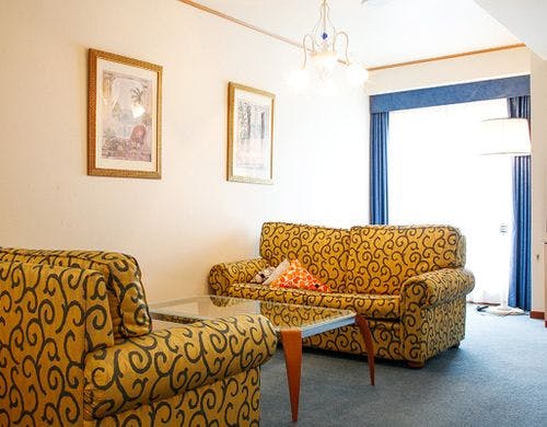 イタリア製の家具をあしらったツイン、スイートのお部屋はオーシャンビュー、ジェットバス付き。心休まる時間をお約束します。