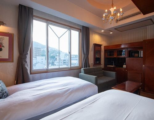長崎市内、浦上地区にあり原爆資料館や平和公園は徒歩圏内。異国の雰囲気を感じられる客室は全室ツインルーム。