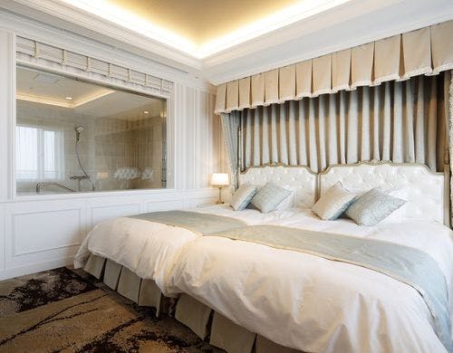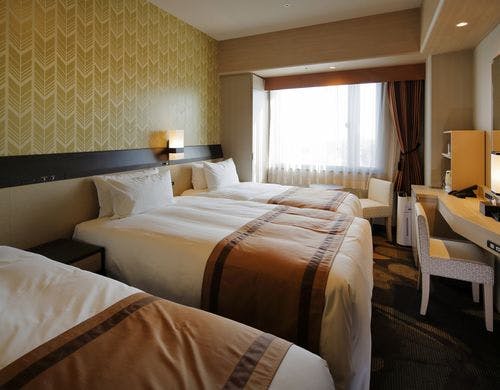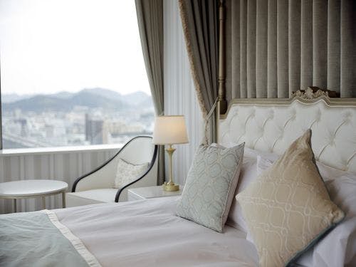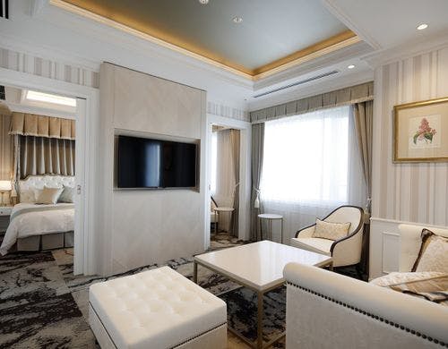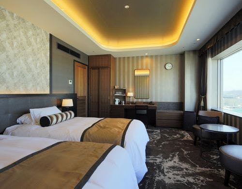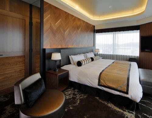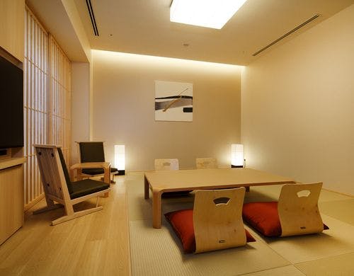 全室禁煙の客室は、矢羽をモチーフにした壁や温かみのある光が差し込む室内など落ち着いた雰囲気が魅力です。和室を含むバリエーション豊かな客室タイプを備え、旅行のスタイルに応じて選べます。広々としたスイートルームでは、より上質なひとときをお過ごしいただけます。