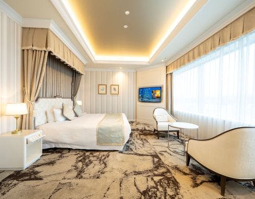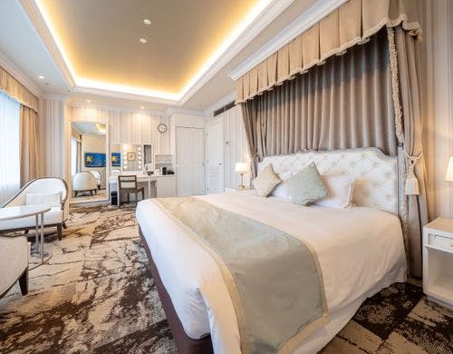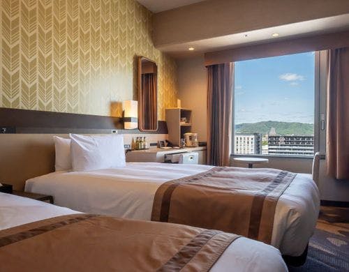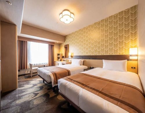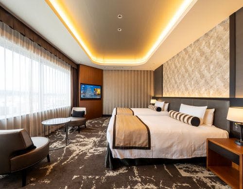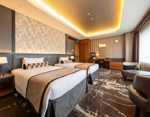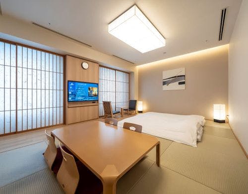客室の特徴全室禁煙の客室は、矢羽をモチーフにした壁や温かみのある光が差し込む室内など落ち着いた雰囲気が魅力です。和室を含むバリエーション豊かな客室タイプを備え、旅行のスタイルに応じて選べます。広々としたスイートルームでは、より上質なひとときをお過ごしいただけます。