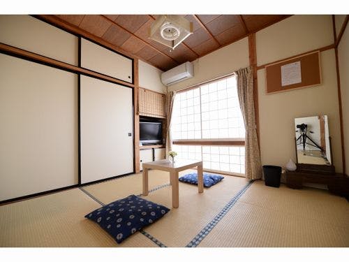 水木ロード徒歩1分。和室2・洋室6のゲストハウス。浴室、洗浄付洋式トイレ、WIFI、P有ペット同宿一部可。ドッグラン完備