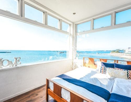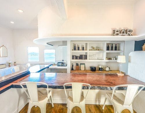 ビーチの上に立つプライベートレンタル邸宅となります。葉山でも屈指の透明度を誇る真名瀬ビーチ沿いに立ち、絶景です。1-2Fは宿泊、3Fはデイタイムユースでご利用いただけます。(入口は別)
