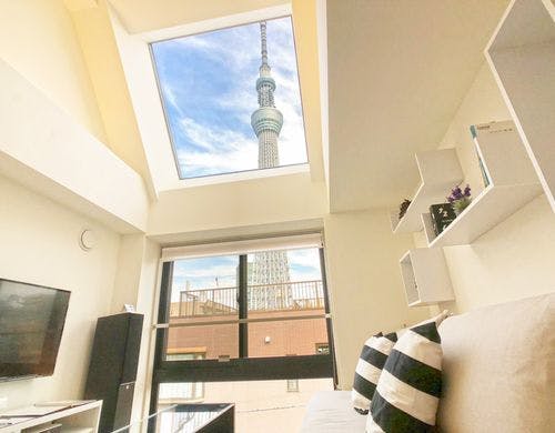 ラ・クラッセ墨田は、東京スカイツリーまで徒歩3分、浅草雷門までは徒歩10分。下町とりっぷをたっぷり楽しめる好立地にあります。天窓から東京スカイツリーが見える4階のお部屋が人気です。