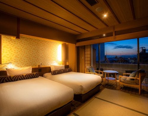 清水寺の参道である5つの坂に囲まれた東山情緒溢れるホテル。草の音も聴こえるほどの静寂に守られた空間で心安らぐ特別なひと時を。全室Wi-Fi無料。清水寺まで徒歩5分。季節を感じる暦湯を愉しむ貸切風呂も