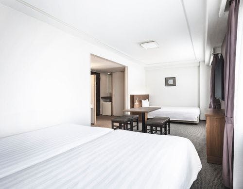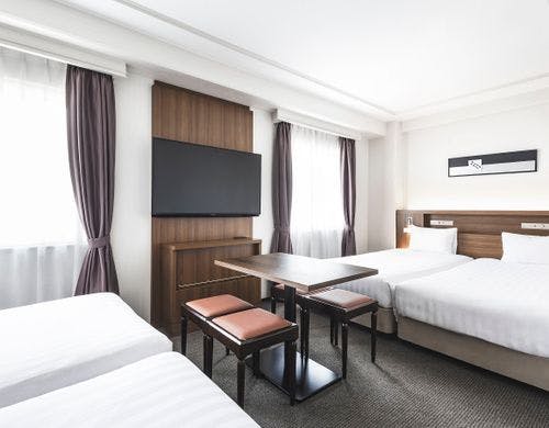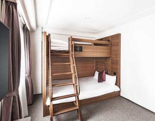 全302室すべてが禁煙で、1名用のシングルから最大6名対応のバンクベッドルームまで、幅広い客室タイプを用意。女性専用のレディースフロアにはセキュリティゲートを設置し、安心感を高めています。全室にWi-Fi、冷蔵庫、空気清浄機、温水洗浄トイレなどを完備し、宝塚歌劇専門チャンネルも視聴可能です。
