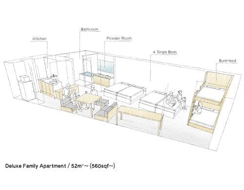 キッチン・ダイニング付の広い客室でみんなでステイ 6名まで同室宿泊OK!