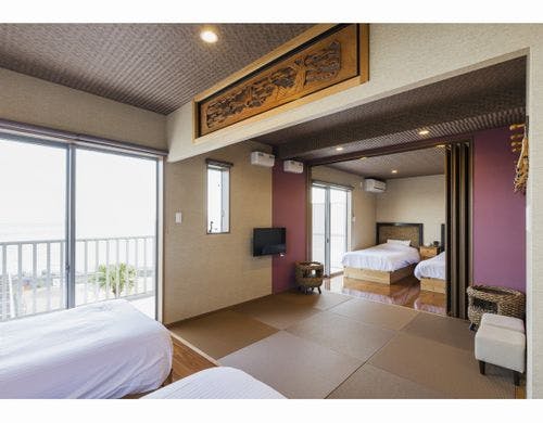 1日1組限定☆お部屋を広くリニューアル!目の前に広がる海を見渡すテラス付お部屋。淡路島の食材たっぷり手作りコース料理他