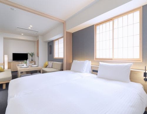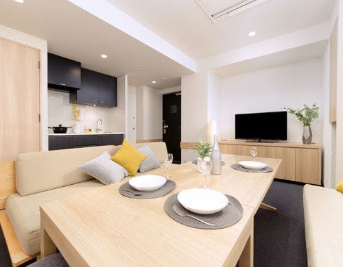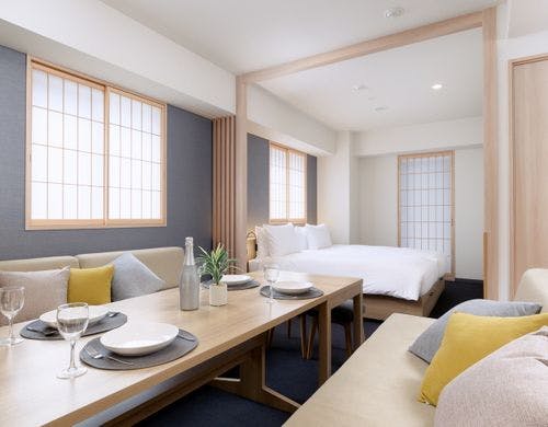 全室キッチン・ダイニング付き!広い客室で長期やファミリーでのご利用にも便利!屋上からの眺めも◎