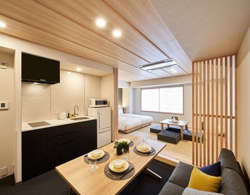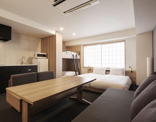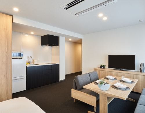 暮らすように滞在できるキッチン・ダイニング付のアパート型のホテル