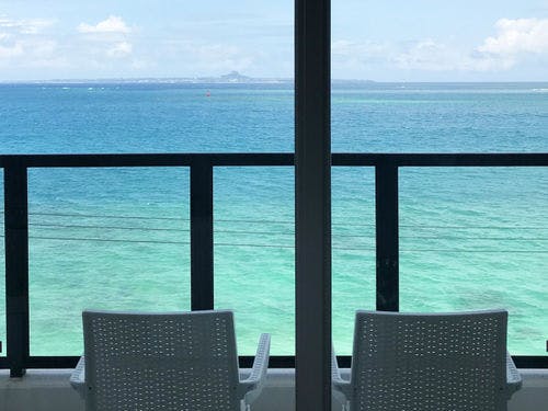 全室ダブルベッド!伊江島を望む特別なオーシャンビューのお部屋♪インスタ映えもバッチリ!