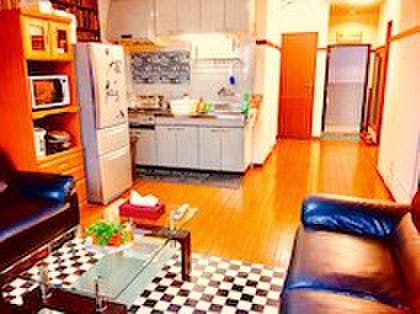 那覇空港壷川駅近く、家電生活用品Wi-Fi完備。大きなリビングに3人掛けソファーが2台、又個室が2つ