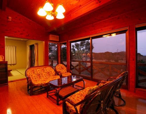太平洋を一望できるオーシャンビューのコテージと温泉施設をご利用いただけます。