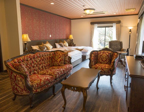 愛犬と泊まるドッグラン付き英国スタイルホテル 。屋内プレイルーム、トリミングルームなど、わんこの設備が充実。 お食事はフレンチコース料理をご堪能ください。 2ヵ所ある貸切風呂は24時間利用可能です。