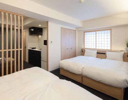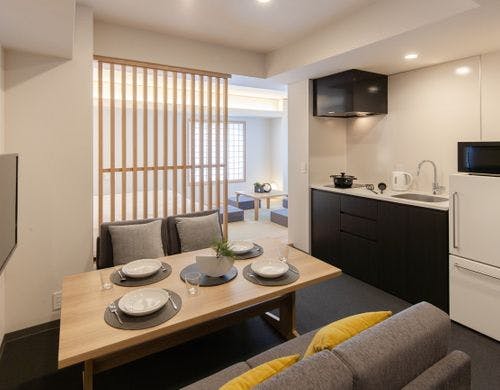 全室キッチン付き!広い客室でみんなでワイワイご自宅のようにおくつろぎいただけます。