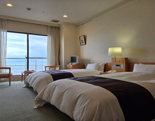 湯量豊富な渚の大露天風呂が男女別々に有り・潮の香りと温泉が楽しめる。