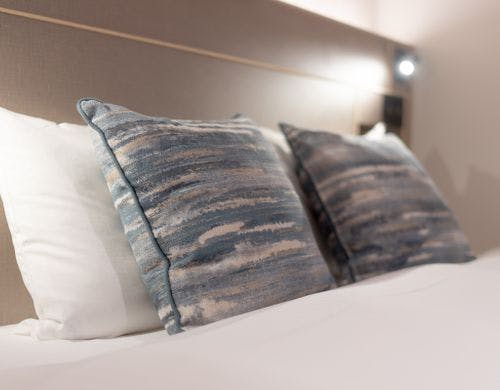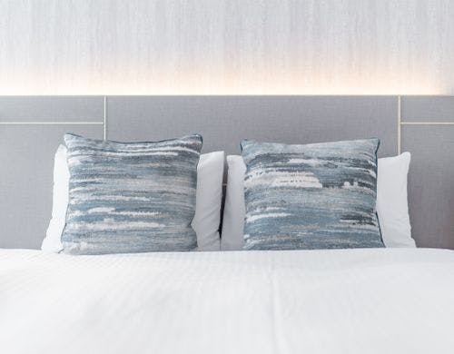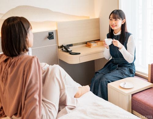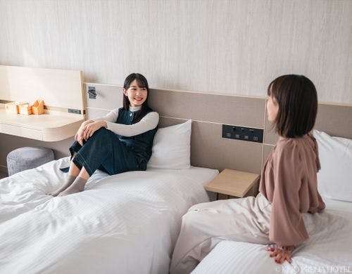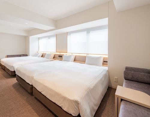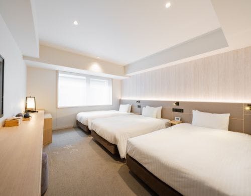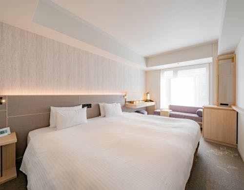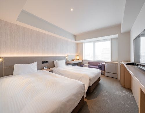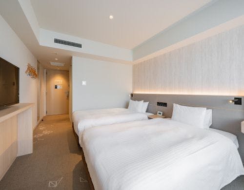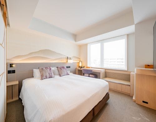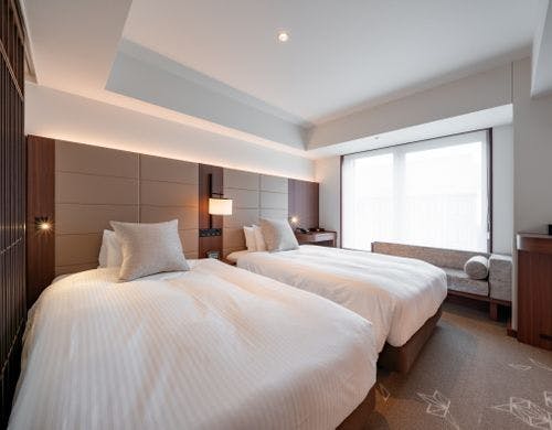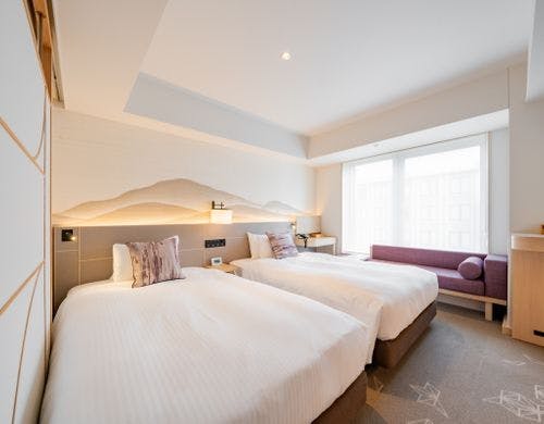 客室は、ツインやダブル、トリプル、フォース、バリアフリー対応のユニバーサルルームなど、多彩なルームタイプを揃えています。水廻りは、ユニットバスタイプから三点セパレート、シャワーブースなどがあります。京都の山々をイメージしたアートのある客室など、細部にまでこだわっており、京都ならではの特別な体験ができる空間づくりがされています。