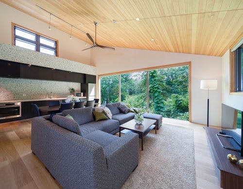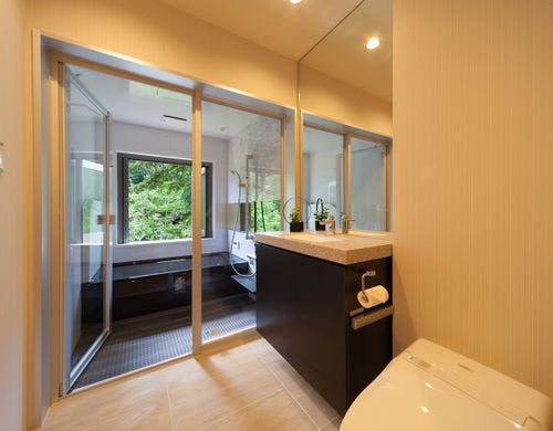 咲花スロープのすぐ近くに位置する、自然と一体感を感じられる開放感抜群のスタイリッシュな建物です。