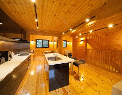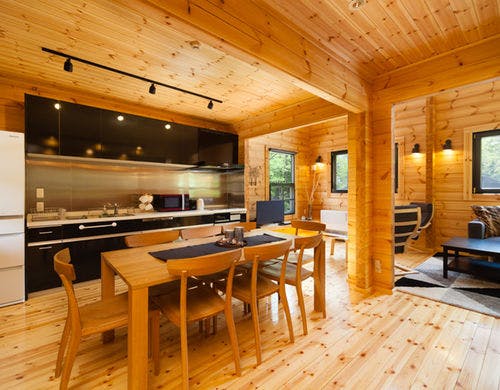 木のぬくもりが存分に感じられるモダンで広々としたオープンスペースでご家族や友人とお寛ぎ頂けます。