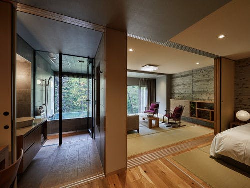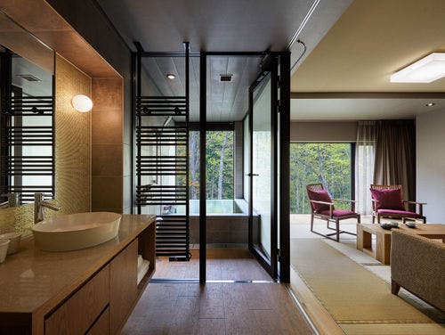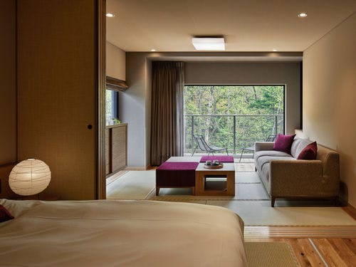 支笏洞爺国立公園内の約3,000坪の敷地に佇む宿。北海道の原風景に包まれる「奥定山渓温泉 佳松御苑」では四季折々の景観に癒されます。薄別温泉と呼ばれるやわらかな湯は、泉質が三大美人の湯のひとつである炭酸水素塩泉です。お食事は、「季を紡ぐ料理」をコンセプトにその時季に最もおいしい北海道の食材を熟練のシェフが感動の一皿にしてご提供しています。全客室に薄別温泉を引いた「森の展望風呂」を完備。支笏洞爺国立公園内には、豊平峡ダムなどの観光スポットもあります。札幌駅から車で約70分。送迎バスを毎日運行しています(予約制)。