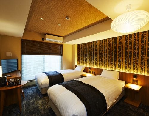 華やかな祇園町の近くに佇むRinn Gion Kenninji。竹林をモチーフとし、非現実の空間を演出したホテルです。