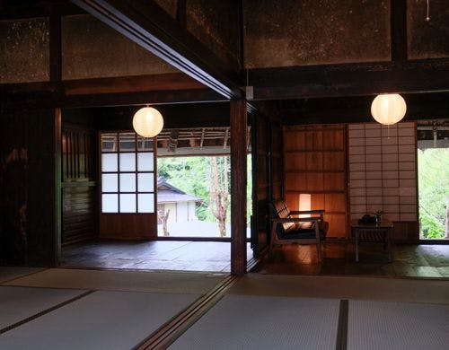 一棟貸しで泊まれる古民家文化財「笠松亭」裏山や谷川もすべてが自分たちのもの。心に残る大切な時間をお過ごしください。