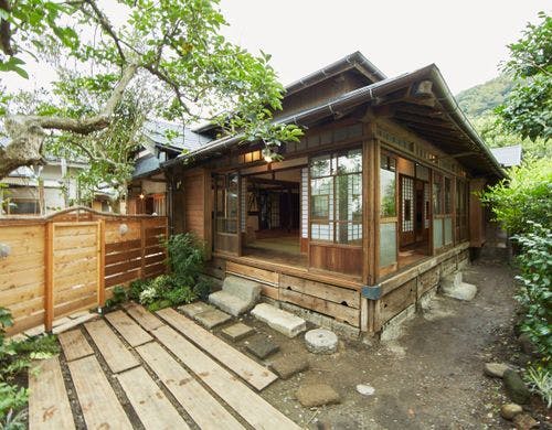 都心から約1時間、真名瀬海岸を一望するロケーション。「港の灯り」は築100年の漁師の家をリノベーションした、古民家一棟貸し宿泊施設です。コーヒースタンド「ANCHORS CAFE」を併設しています。