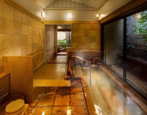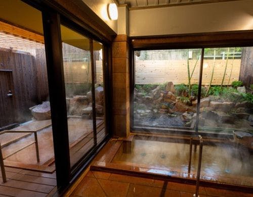 貸切風呂のある良質自慢・京町屋風湯宿●金泉の源泉「有明源泉」近く良質・新鮮な湯●4つの無料貸切風呂で愉しめる銀泉
