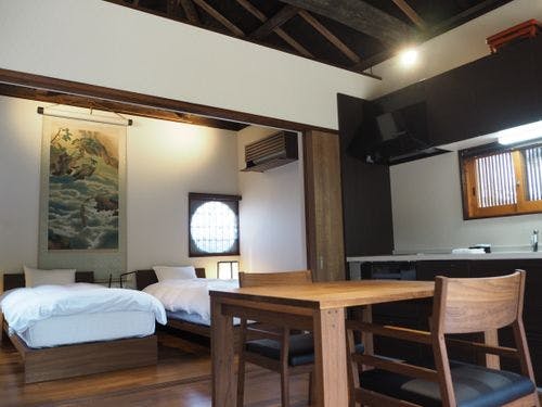 明智光秀が礎を築いた旧亀山城下町の一角。歴史あるお香商の古民家を亀岡市が改修し、宿泊施設として生まれ変わりました。