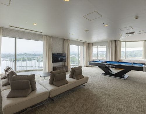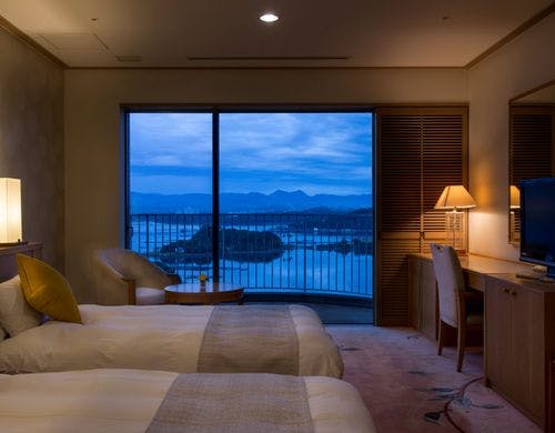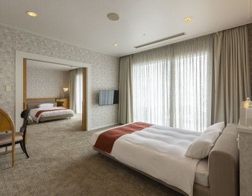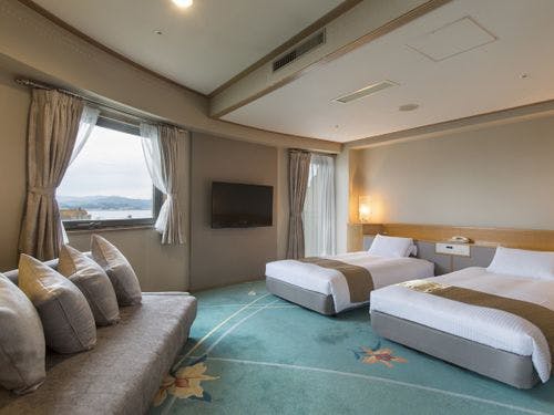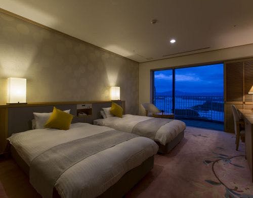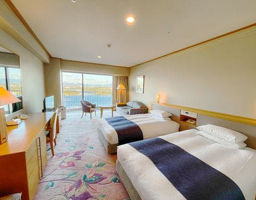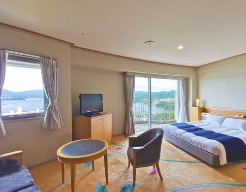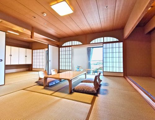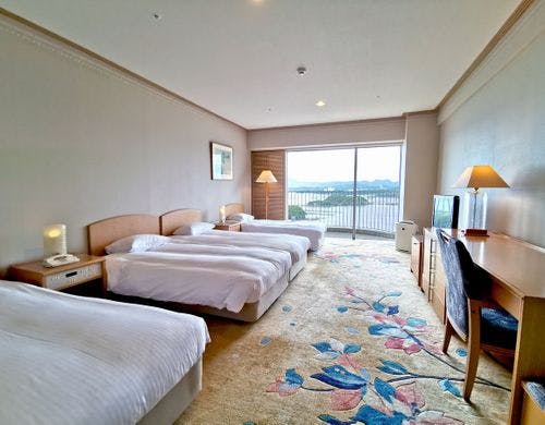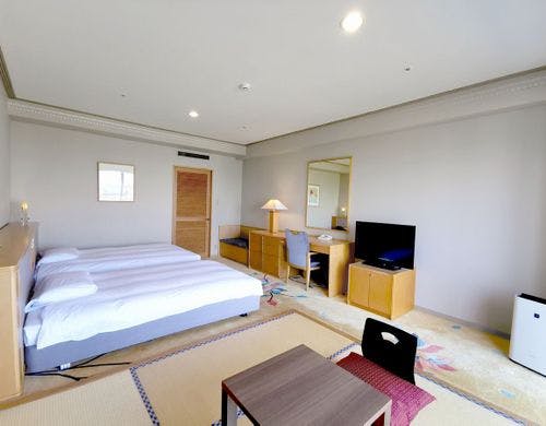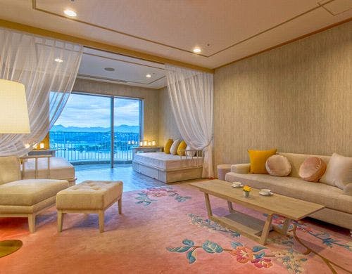 すべての客室がオーシャンビューで、窓からは青い海を一望できます。広々とした空間には高品質なアメニティが備わり、快適にお過ごしいただけます。ロイヤルスイートやジャクジーバス付のベイスイートなど特別なお部屋に加え、特別和室や和モダンルーム、ファミリー向けの客室など、多様なニーズに応じたお部屋をご用意しています。