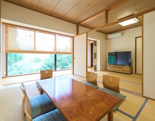 【A101のみワンちゃんご同伴可】広々したリビングからは明星ヶ岳の眺望も楽しむことができます