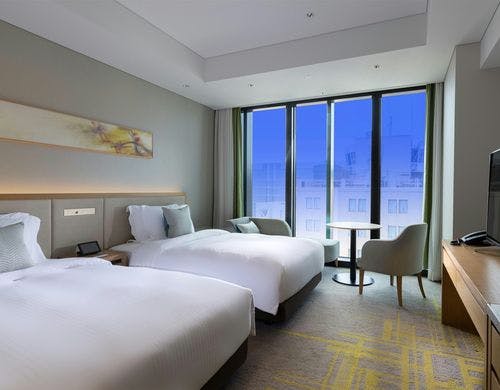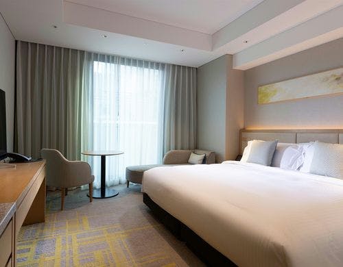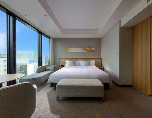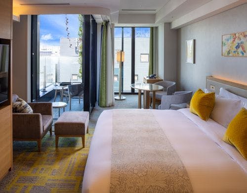 客室の特徴すべての客室が30平方メートル以上の広さを誇り、開放感と快適性を兼ね備えた空間設計です。大きな窓やベンチソファ、広々としたバスルームなどが設置され、観光はもちろんビジネス利用にも適した設えが魅力です。バリアフリー対応やテラス付きの客室など、多様なニーズに応えるラインアップが揃っています。