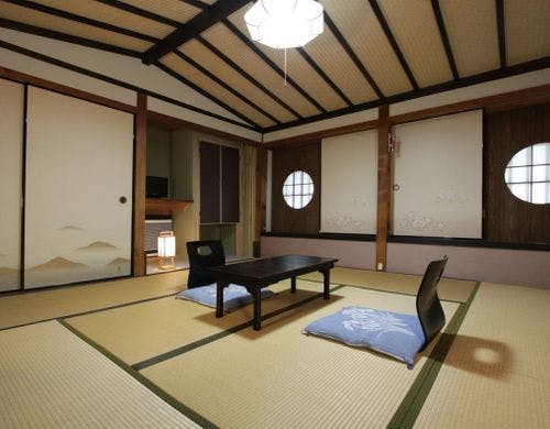 貸切風呂有・朝夕共お部屋食です・天然地下水100%の清潔な浴湯・とろっと手作り濃厚ごま豆腐〔新装トイレ付和室〕