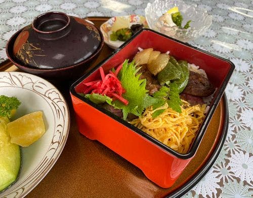 源泉かけ流し貸切入浴【海鮮鍋懐石・くまの牛の陶板焼き】朝夕食事処で。