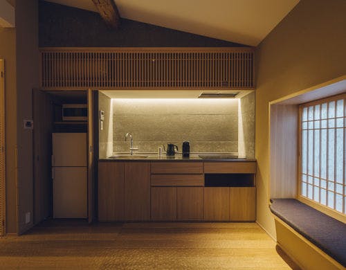 小型犬2匹までご宿泊可能(条件あり)。三条会商店街まで徒歩3分の立地です。キッチンには調理器具や食器も揃っており、まるで暮らすように京都をお楽しみいただけます。無料駐車場もご用意しております。