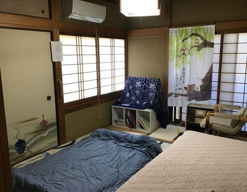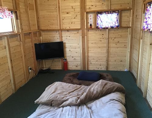 昔ながらの五右衛門風呂、カヌー、吹き矢体験もできる。熊野古道沿いのログハウスの宿。空調設備有り、布団もあります。