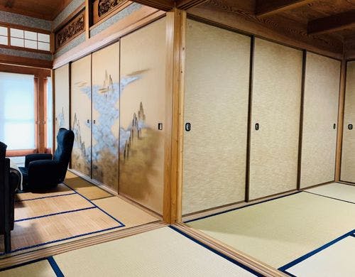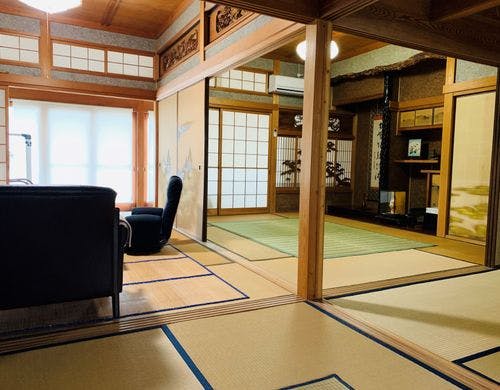 【一棟貸切】築50年の日本建築の平屋建て古民家宿 カフェを併設しており全面のガラス窓から由良湾を一望