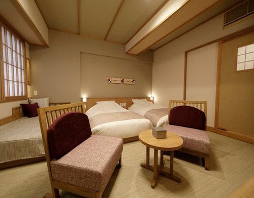 客室の特徴客室は和モダンの意匠を基調とし、最上階の露天風呂付き和洋室や、広々とした和フォース、家族旅行に適した和トリプル、木の温もりあふれる和ツインなど多彩にご用意。冷暖房、加湿空気清浄機、冷蔵庫、セーフティーボックスなど設備も整い、滞在中も快適に過ごせます。