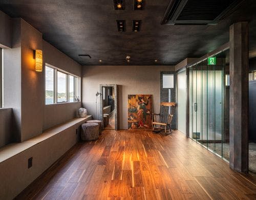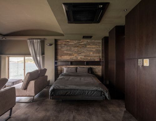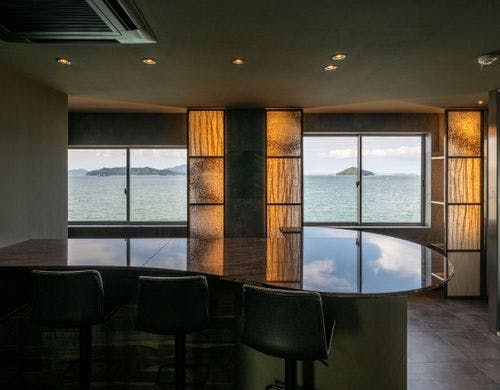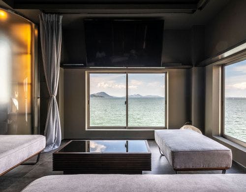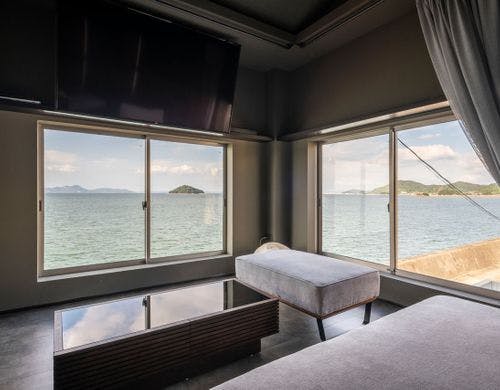和モダンテイストの落ち着きあるインテリアに現代アートを融合させた一棟貸しのゲストハウス「TSUSHIMA(ツシマ)」。眼前に広がる瀬戸内海の多島美を眺めながら、穏やかに流れる時をお過ごしください。