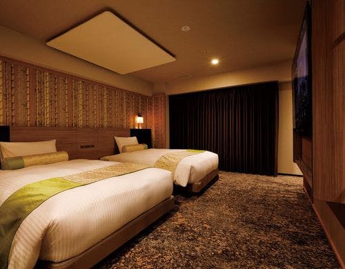 客室は、伝統色や和のモチーフを活かした落ち着いたデザインで統一されています。用途や人数に合わせて選べる多彩な客室タイプが揃っており、ユニバーサルルームや親子で利用しやすい部屋も完備。機能性と快適さを兼ね備え、旅の疲れを癒やせる空間となっています。