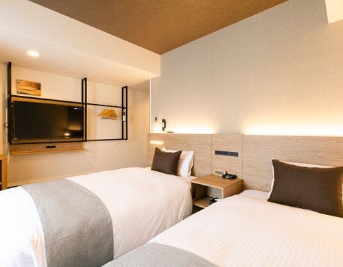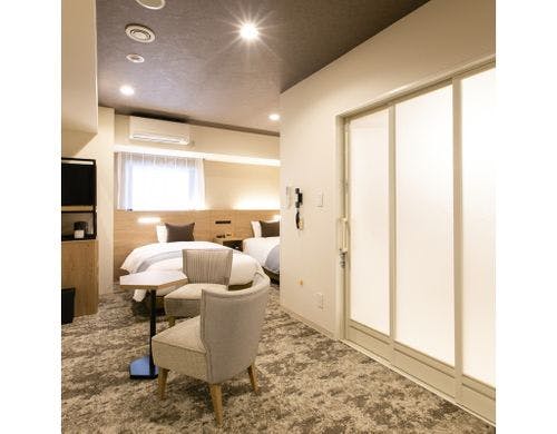 全室禁煙で快適な滞在をサポートします。「ジンギスカンのジンくん」コラボルームは、地元キャラクターの装飾が施され、特別感を楽しめる空間です。空気清浄機を備えた客室が揃い、Wi-Fiやアメニティも充実しています。