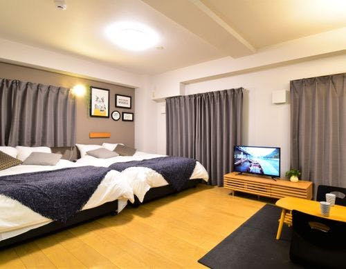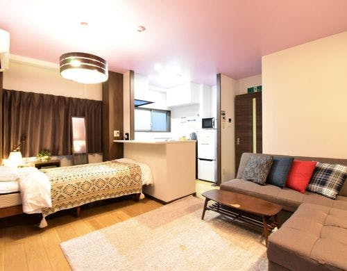 全室キッチン・洗濯機・バス完備!マンションタイプのお部屋で長期滞在にも便利な立地です