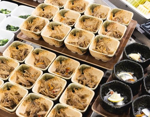 館内では、電子レンジやコインランドリー、ランドリーサービスなどのサービスが用意されています。また、ベビーベッドや冷却枕、車椅子など多彩な貸出備品も備わっています。朝食は、岡山県産の新鮮野菜を中心としたビュッフェスタイルで、地元ならではの料理も味わえます。展望風呂やマッサージチェアを備えた湯上り処、岡山の観光本や軽食を揃えたラウンジも魅力です。